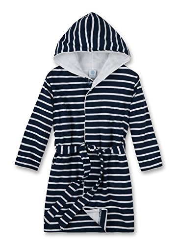 Kuschelweicher Bademantel für Jungen von Sanetta. Außen aus feinem Jersey und innen mit saugstarken Frottee. Ideal auf Reisen, da der Bademantel ein geringeres Volumen hat.Ökotex Standard 100, trocknerbeständig, körperverträglich, 2-jahres-Garantie